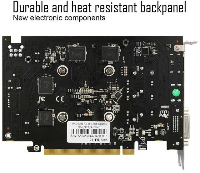 [(4GB/GDDR5/128-bit)] The 4g video card is powerful for Polaris architecture with14nm process, with 512 stream processors, and 128-bit 4GB GDDR5 memory, 6Gbps memory speed . The basic frequency is 1183 MHz.