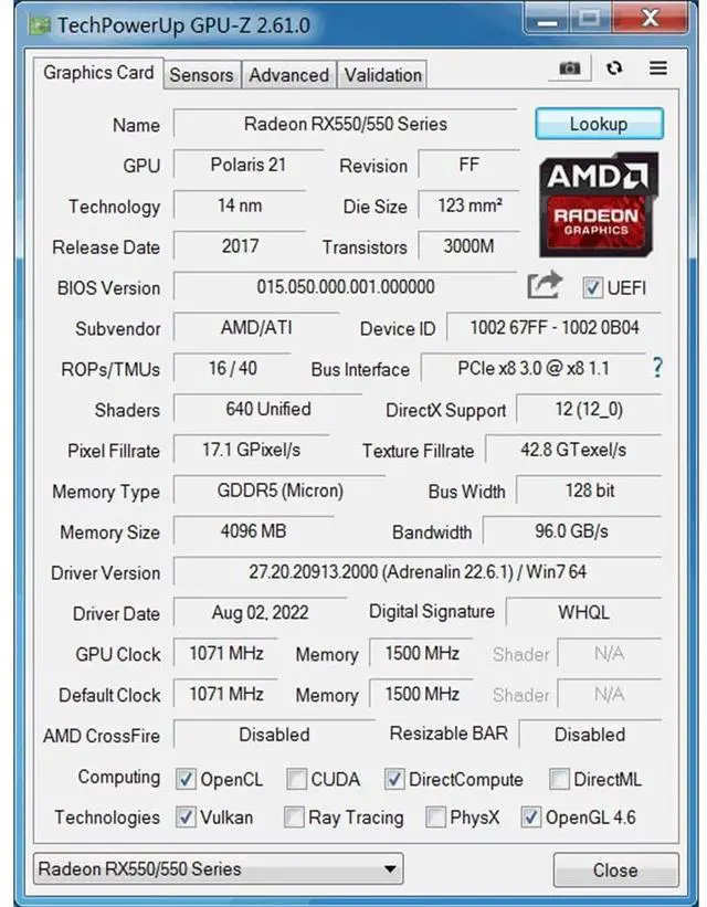 RX 550 4G Graphics card