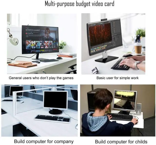 Beginner graphics cards: It is an inexpensive option for you with a budget that not only increases screen performance additionally, but also provides good performance for less demanding games, easy use, office work, application.