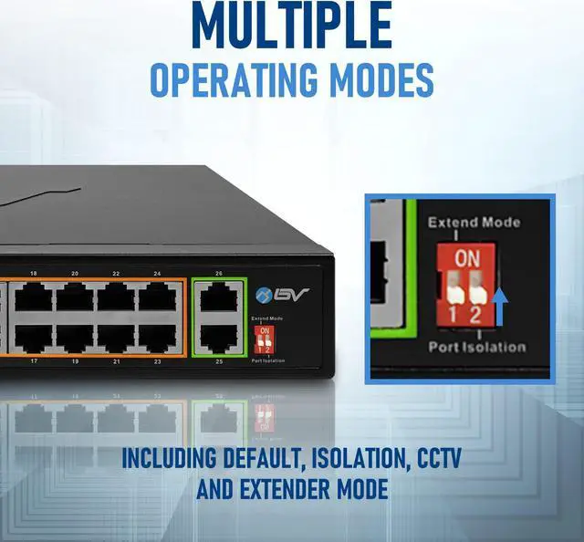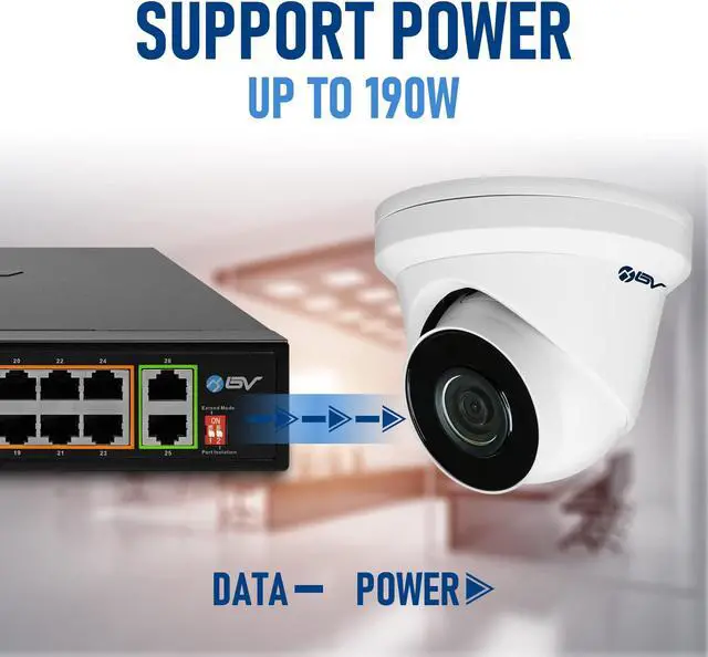 BV-Tech 24 Port PoE+ Switch with 2 Gigabit Ethernet or SFP Uplink, Long Range ^^ POE-SW2402