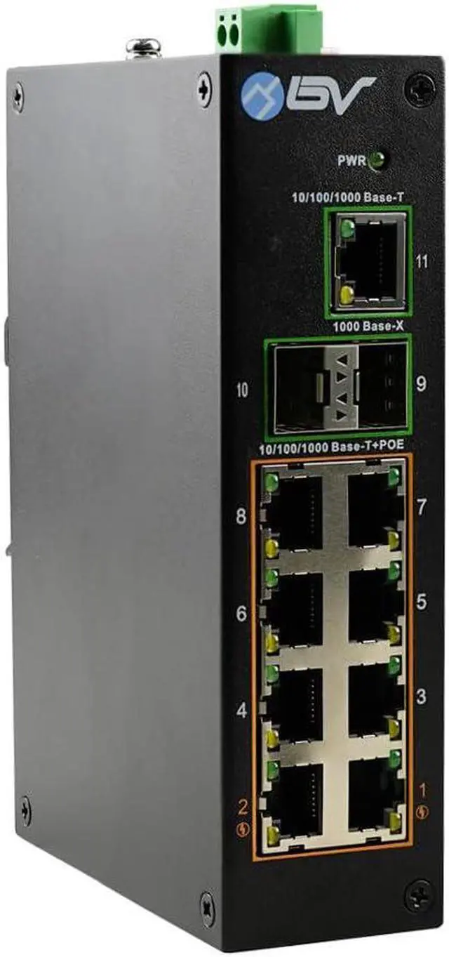 Elevate your network infrastructure with the BV-Tech POE-SW803-DIN Unmanaged PoE Switch, a powerful solution designed to empower your connectivity and simplify device management. Engineered with precision and packed with intelligent features, this switch is built to cater to your networking needs. Featuring a total of 11 ports, the POE-SW803-DIN offers a seamless blend of efficiency and versatility. With 8 RJ-45 10/100/1000 Mbps PoE ports, devices can be powered and connected simultaneously, providing reliable connections for your essential equipment. Additionally, the 2 SFP 1000 Mbps uplink ports (Port 9-10) ensure high-speed data transfer over longer distances, enhancing your network's capability.