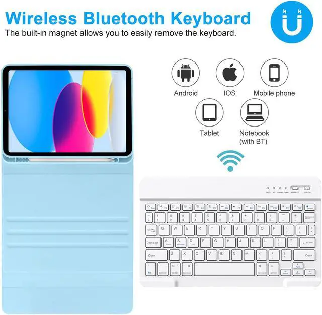 iPad 10th Generation Case with Keyboard (10.9", 2022),iPad Keyboard Case for 10.9" 10th Gen, Detachable - Pencil Holder - Flip Stand Cover - Keyboard Case for Latest iPad 10th Gen 10.9 inch 2022 Blue