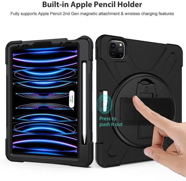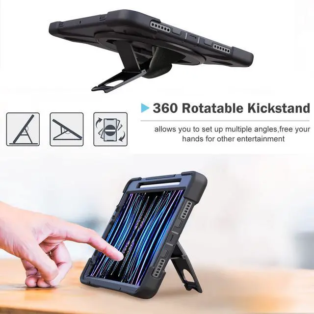 ProCase for iPad Pro 11 Inch Case 2022 2021 2020 2018, Rugged Heavy Duty Shockproof Cover with Hand Strap Shoulder Strap for iPad Pro 11" 4th 3rd 2nd 1st Generation -Black