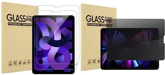 This Pack Contains: 2 pack screen protector for iPad Air 5/Air 4/iPad Pro 11 2021 2020 2018; one 4-way privacy screen protector for10.9" iPad Air 5 2022/iPad Air 4 2020/iPad Pro 11" 3rd Gen 2021/2nd Gen 2020/1st Gen 2018