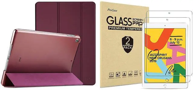Bundle 2 items: 1 x iPad 7th Gen 10.2" 2019 Case Wine, 2 x iPad 7th Gen 10.2 2019 tempered glass screen protectors. They are exclusively designed for iPad 10.2 Inch 7th Generation 2019(Model Number: A2197 A2198 A2200) ONLY