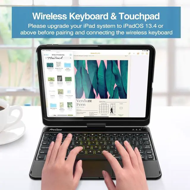 Multi-gesture control touchpad provides a better user experience on typewriting and browsing webpage, no need to swipe or click the screen too often; Please upgrade your iPad system to OS 13.4 or above to successfully connect the wireless keyboard