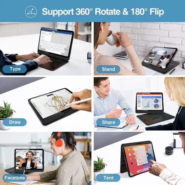 360-degree rotation and 180-degree flip fulfills free angle adjustment, provides a better viewing, gaming and typing experience; Ideal for use in study, meeting and entertainment