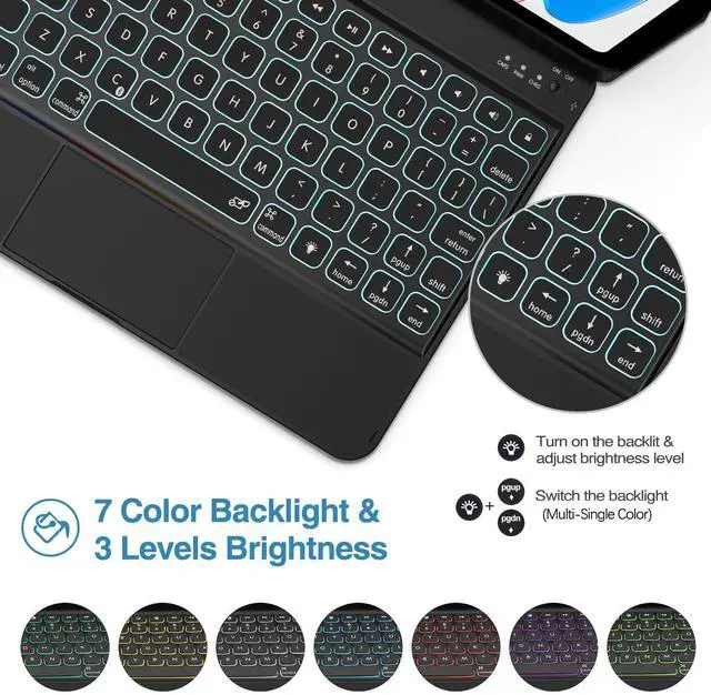 ProCase 360° Rotation iPad (A16) 11th 2025 / iPad 10th Generation Keyboard Case with Multi-Touch Trackpad for, 7 Color Backlit Touchpad Keyboard Case for 11th/10th Gen 11/10.9 inch Black