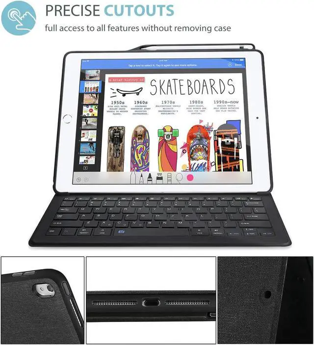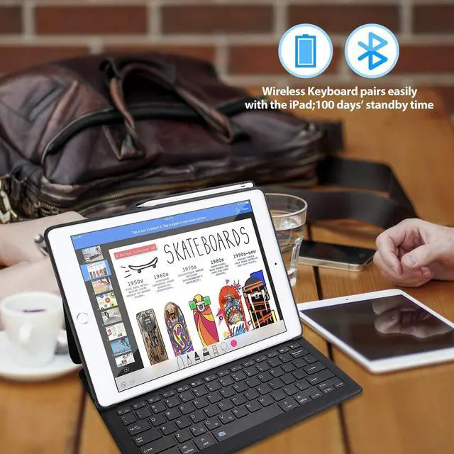 Wireless Keyboard pairs easily with the iPad; Two stand slots and built-in magnet securely hold your iPad in landscape mode for comfortable reading and typing