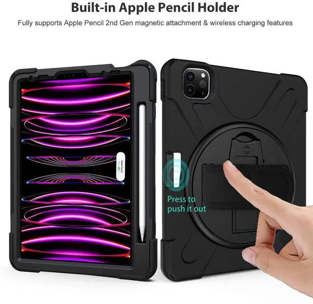Heavy duty protective case for iPad Pro 12.9" 6th Gen 2022 (Model: A2436 / A2764 / A2437 / A2766), iPad Pro 12.9" 5th Gen 2021 (Model: A2378 / A2461 / A2379 / A2462), iPad Pro 12.9 Inch 4th Gen 2020 (Model: A2229 / A2069 / A2232 / A2233), iPad Pro 12.9 Inch 3rd Gen 2018 (Model: A1876 / A2014 / A1895 / A1983). Not compatible with any other iPad models. Please check back bottom of your iPad to find the model number