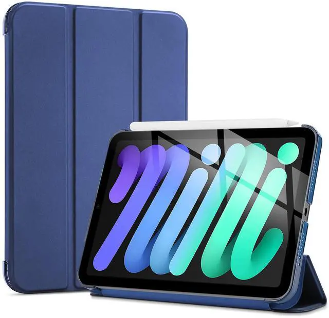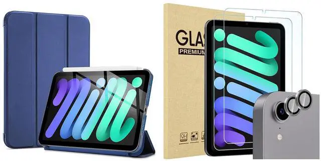 ProCase smart case (navy) for iPad mini 6 8.3 inch 2021 bundle with 2 pack screen protector + 2 pack camera lens protector matching iPad colors (gray) for iPad mini 6th generation.