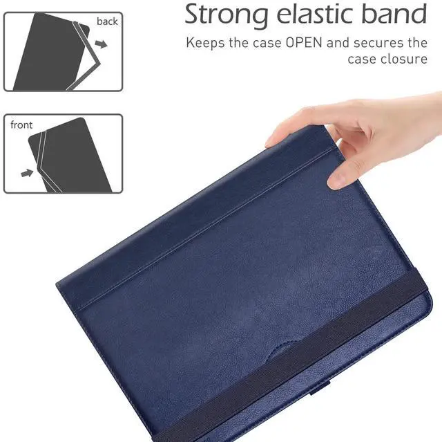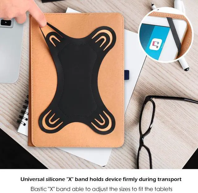 Universal Case compatible with 9- 10.1 tablets (Case for URAO, REVVL Tab 2, UMIDIGI G1 Tab, BYYBUO SmartPad A10_L, ApoloMedia EP103A, ECOPAD, ZZB ZB10, TECLAST P30, Jeazans OC101, POWMUS, HiGrace, Headwolf W5, UGRIHACH UG-C10, COOPERS CP10, Lville LVEC10, YQSAVIOR YQCP20, EHFiDC K11-blue, and other tablets with screen sizes between 9- 10.1 in, or outer dimensions between 10.5 - 7.5 inch (No back camera opening; NOT support auto sleep/wake for any tablets) ^^ Universal silicone "X" band holds device firmly during transport; Elastic "X" band able to adjust the sizes to fit the tablets ^^ Innovative 360 degree kickstand design and multiple stand slots allow users to set up the tablet into different viewing angles ^^ Premium composition leather exterior and soft interior offer great protection against daily use ^^ Built-in elastic stylus pen holder; Elastic band closure secures the case