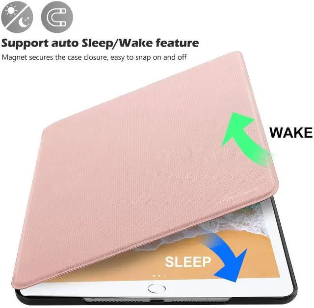 Different Viewing Angles: designed with dual standing positions for users to adjust the iPad into different angles ^^ Support auto Sleep/Wake feature; Magnet secures the case closure, easy to snap on and off
