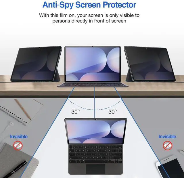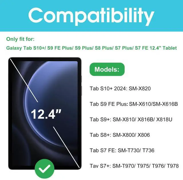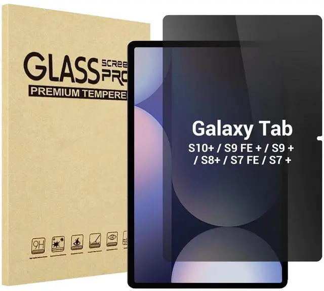 Compatible Device - Quality tempered glass screen protectors exclusively designed for Samsung Galaxy Tab S10+ 2024SM-X820; Tab S9 FE+ Plus (SM-X610, SM-X616B); Tab S9 Plus 12.4" 2023 (SM-X810, SM-X816B, SM-X818U, SM-X816N); S8 Plus 12.4" 2022 (SM-X800, SM-X806); Galaxy Tab S7 FE 12.4 2021 (SM-T730, SM-T736); Galaxy Tab S7 Plus 12.4" 2020 (SM-T970, SM-T975, SM-T976, SM-T978) ONLY. Please check the model number SM-*** at the Setting of the tablet before purchase ^^ Limits viewing angle to +/- 30 degrees, the privacy film guard will darken your screen when viewing from the side; (Please note that the privacy cover will darken the screen a little to prevent the peeking eyes near you, so please turn up your device display brightness for better viewing experience) ^^