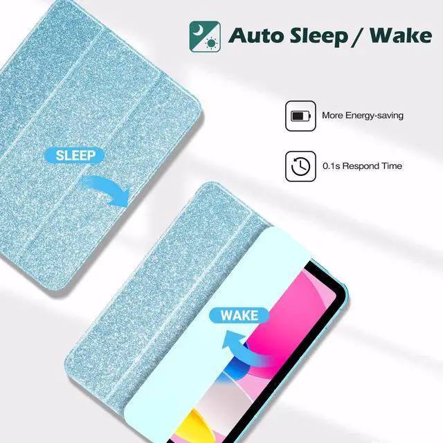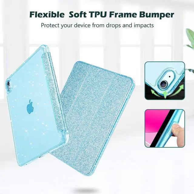 ProCase for iPad (A16) 11th Generation 11 Inch 2025/10th Generation 10.9 Inch 2022 Case with Pencil Holder, Hybrid iPad 11 10 Case with Clear Back, Supports Auto Wake/Sleep -GlitterBlue