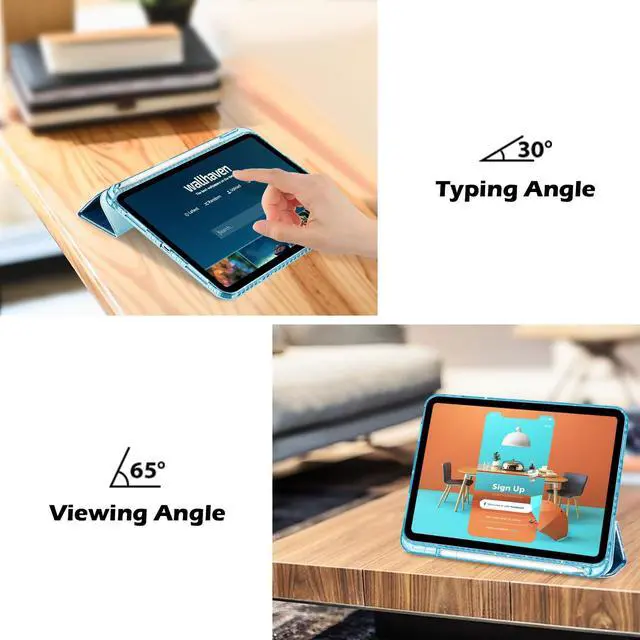 Release (Model: A2696 A2757 A2777). Also compatible with USB-C Pencil & 1st generation Pencil. Please check back bottom of your iPad to find the model number ^^ Transparent hard back cover shows off the original beauty of your device; Built-in pencil holder for keeping your pencil safe and secure ^^ Flexible TPU frame and soft microfiber lining protect your iPad from shocks, drops and scratches; Sleek front cover offers comfortable sense of touch ^^ Tri-fold front cover with two standing positions are provided for satisfying your viewing and typing needs ^^ Support auto Sleep/Wake feature; Magnet secures the case closure; Full access to all features (Cameras, Speaker, Ports and Buttons)