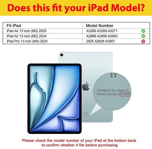 Generation (M3) 2025(model number: A3268 A3269 A3271 / Air 13" 6thM2 2024 (model number: A2898 A2899 A2900); Please verify the model number at the back of your iPad before purchase ^^