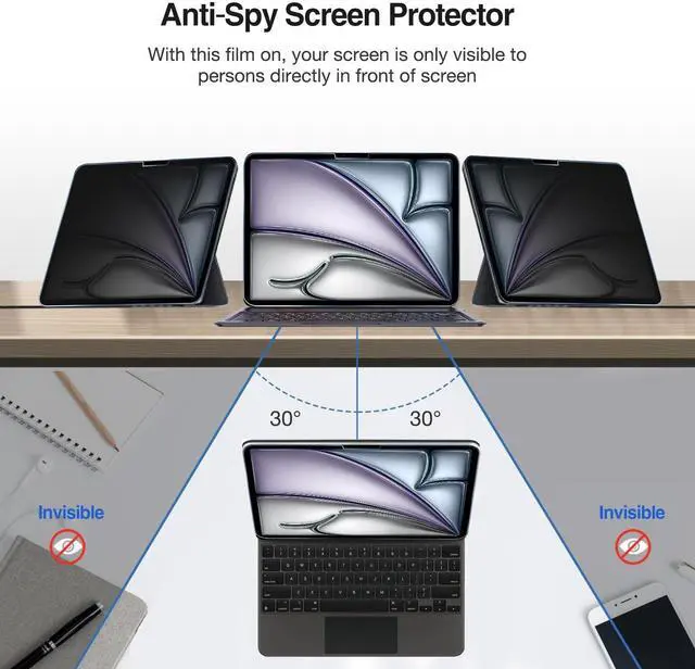Anti Spy: Only works in landscape mode - With this film on, your screen will only be visible to persons directly in front of screen, preventing the side-snoopers from viewing your screen. (Please note that the privacy cover will darken the screen a little to prevent the peeking eyes near you, so please turn up your device display brightness for better viewing experience) ^^