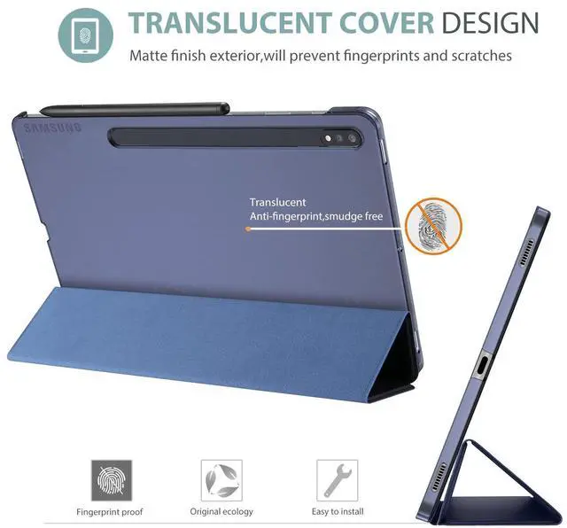 Slim case for Samsung Galaxy Tab S8 Plus 12.4 inch 2022 Release (SM-X800/X806/X806B/X806U/X806N); Galaxy Tab S7 FE 2021 (SM-T730/T733/T736/T738); Galaxy Tab S7 Plus 12.4 inch 2020 Release (SM-T970/T975/T976/T978) ONLY; Please kindly check the model number SM-X***/SM-T*** on the tablet Settings before purchase ^^ Lightweight hard back design adds minimal bulk while offering your device great protection against accidental drops and bumps ^^ Translucent frosted back cover allows you to see the original beauty of your device, protect your device against fingerprints and scratches in the mean time ^^ Classic and professional design; Full access to all features (Cameras, Speaker, Ports and Buttons), but NOT support Smart Keyboard in this case ^^ Support pencil charging and attachment feature at side and back of the case; Support auto Sleep/Wake feature; Magnet secures the case closure, easy snap on and off