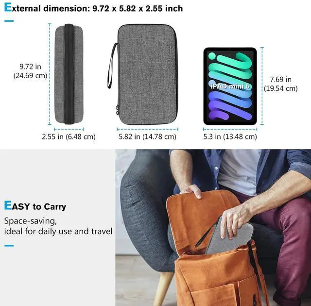 Large Capacity: Portable hard tech travel case for organizing small electronics accessories, like MacBoook charger, cables, power bank, USB flash disk, SD card, mouse, earphone, power adapter, etc. DimensionExternal 9.72 * 5.82 * 2.55 inches, Internal 9.32 x 5.43 x 2.16 inches ^^
