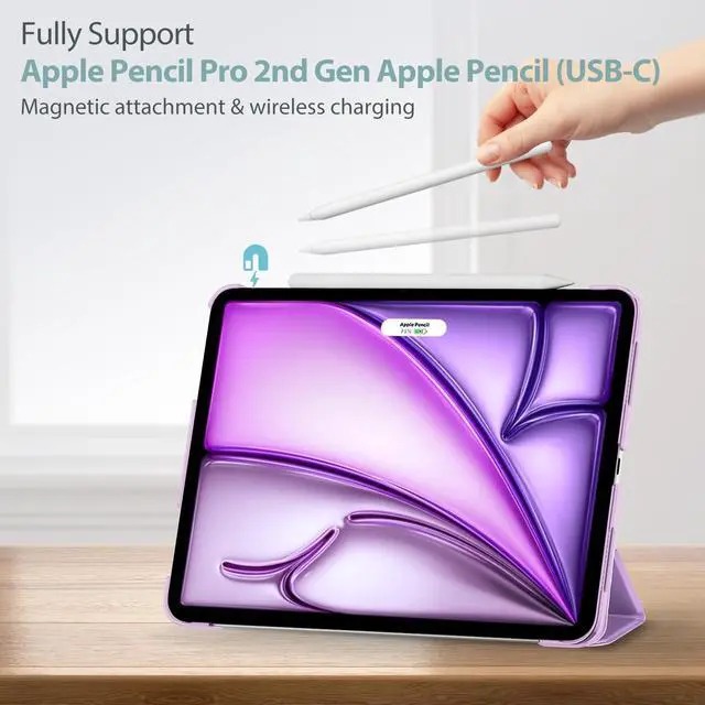 NOT support Smart Keyboard in this case ^^ Compatible for Apple Pencil Pro & 2nd Gen & Apple Pencil (USB-C), Support charging and attachment feature; Support auto Sleep/Wake; Magnet secures the case closure, easy snap on and off