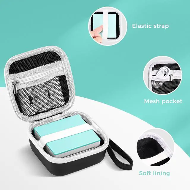 Compatible with Memoking T02, Phomemo M02/ T02/ M02S/ M02 Pro/ M02 X/ Q30/ Q30S/ P12/ P12 Pro (CASE ONLY) ^^ Hard EVA shell with smooth PU finish & soft lining, shatter-resistant & shock-absorbent & water-resistant, offers multiple layers of protection ^^ Mesh pocket with zipper for thermal label/paper, cables and other accessories. Elastic strap keeps the machine in place ^^ Compact & portable; detachable wrist strap for conveniently carrying or hanging ^^ Perfect for home storage, travel or transport. Multiple colors available, a great gift idea for kids