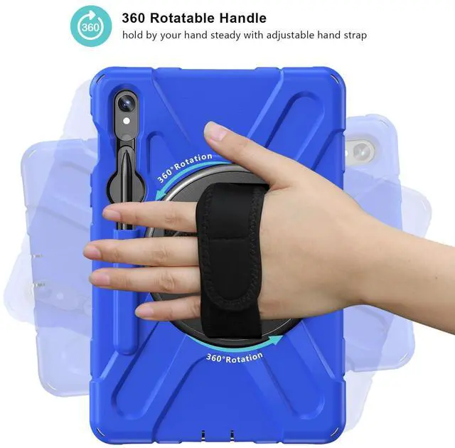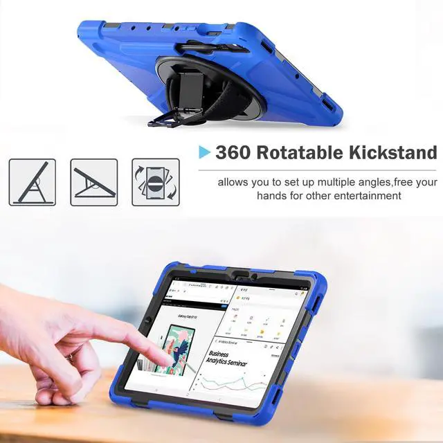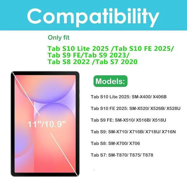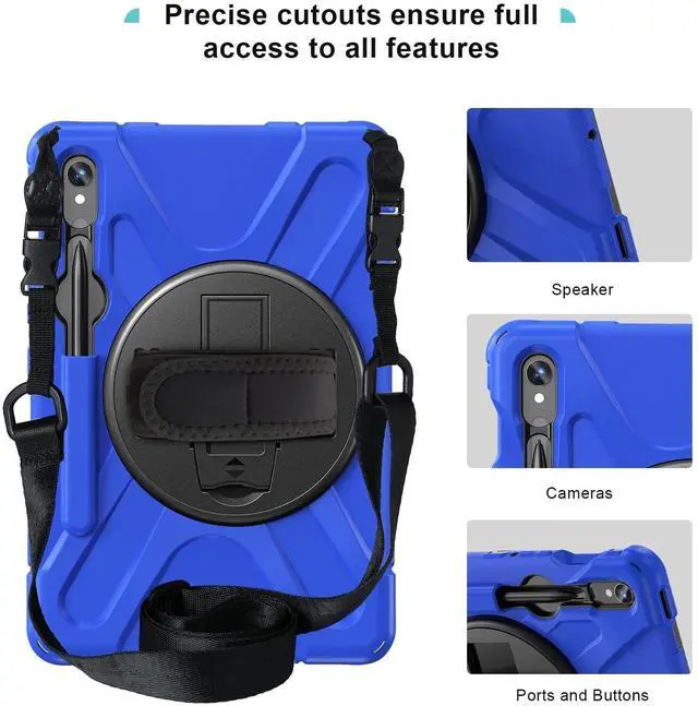 Heavy duty protective case for Galaxy Tab S10 Lite 10.9" 2025(SM-X400/X406B); Tab S10 FE 2025(SM-X520); Tab S9 FE 10.9" 2023 (Model: SM-X510/X516B/X518U); Tab S9 11" 2023(SM-X710, SM-X716B, SM-X718USM-X716N); Tab S8 11" 2022(SM-X700/ SM-X706) and Tab S7 11" 2020(SM-T870/ SM-T875/ SM-T878) ONLY. Please kindly check the model number SM-X*** / SM-T*** at the Setting of the tablet before purchase ^^ 360-degree rotating stand provides optimal position for typing or viewing; thanks to the ergonomic and comfortable grip on the back, you can handle your tablet safely and safely with one hand ^^ Adjustable and removable shoulder strap provides ultimate comfort when carrying; you can even attach it to the car headrest to see your hand freely in the back seat, ideal for working, learning, and traveling ^^ Advanced 3 in 1 construction with premium PC and shock-absorbing silicone material offers comprehensive protection for your tablet, efficiently prevents it from accidental drop, shock, skid and scratch ^^ Built-in S Pen holder design makes it convenient for keeping your Pen at hand; Precise cutouts ensure full access to all features (Cameras, Speaker, Ports and Buttons)