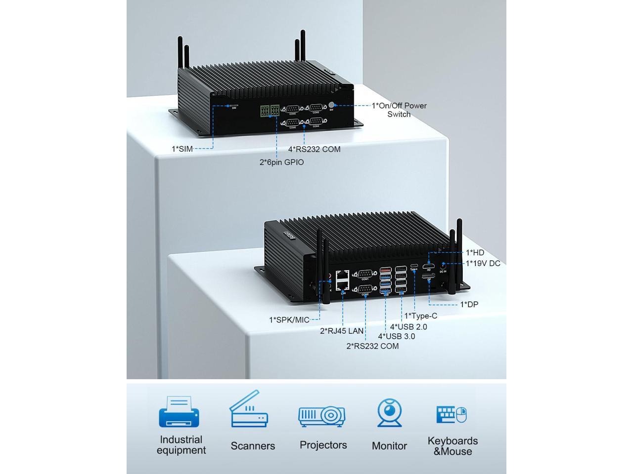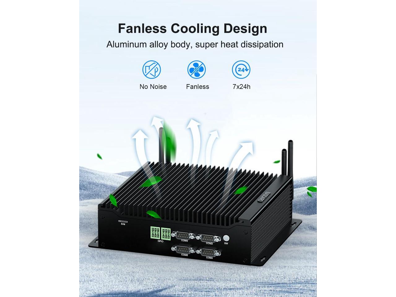 - [(Excellent Performance & Win 11 OS)] Fanless Industrial PC powered by Core i5 10210U, the base frequency is 1.60 GHz (up to 4.20 GHz), 4 Cores 8 Threads, UHD Graphics, it runs faster and more stable. The mini desktop pc comes with Win 11 Pro pre-installed and also supports Win 10, Linux OS. Mini PC has powerful functions and is ideal for a variety of applications, such as digital signage, industrial CNC, embedded control, etc.
