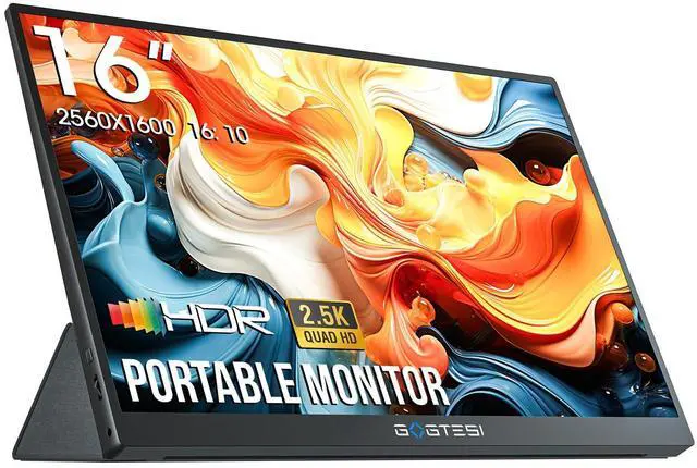 gogtesi 16 Inch Portable Monitor, 2.5K 60HZ 2560x1600 Office Portable Monitor QHD IPS Ultra Bright Eye Care with Matte Screen for PC, MAC, Phone, Switch, PS, Xbox with USB-C & HDMI