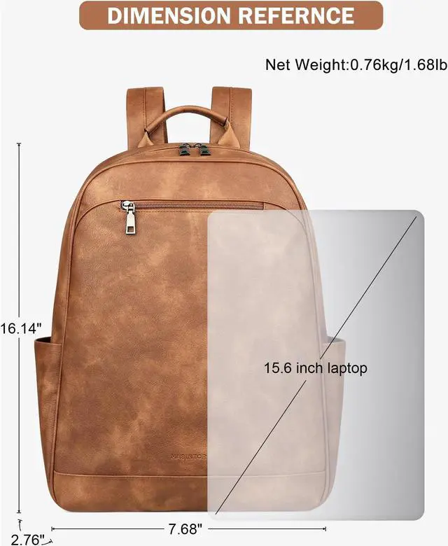 MASINTOR 15.6 inch Leather Laptop Backpack Purse for Women, Designer Travel and Work Bag with Laptop Compartment Mocha Brown