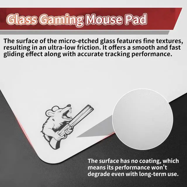 [(Brand-new Etching Process)] The tempered glass surface is treated with etching, presenting fine and dense textures. It features ultra-low resistance, enabling the mouse to glide swiftly and smoothly while ensuring accurate tracking performance. The absence of a surface coating means that its performance will not deteriorate even with long-term use.