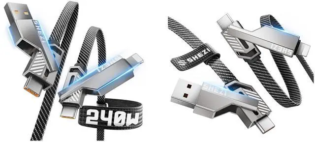 4-IN-1 Versatile Design: Our USB-C cable covers all your charging needs with 1 USB-A port, 1 Lightn-ing port, and 2 USB-C ports. Compatible with most devices, it's perfect for travel and everyday use, offering ultimate convenience in a single cable
