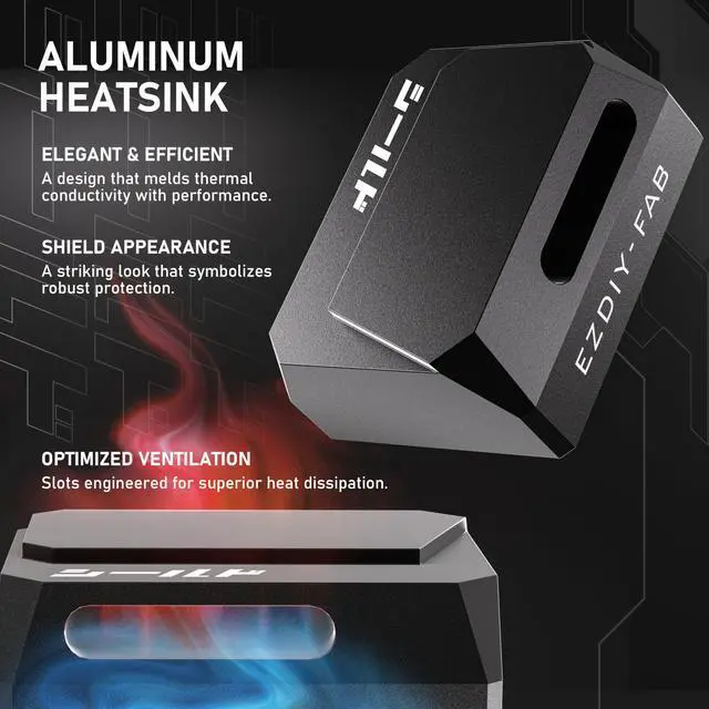 Boasts a mech-armor shield-style exterior with a sleek aluminum casing, which not only enhances the visual appeal but also contributes to cooling with integrated thermal venting channels, providing a synergistic boost to both aesthetics and cooling performance.