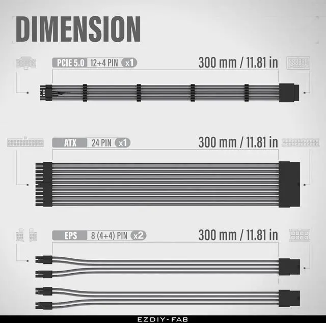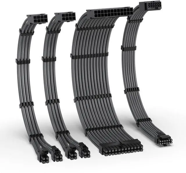 Value PSU Extension Cable Bundle Includes 2 x 4+4-pin EPS cables, 1 x 24-pin ATX cable, and 1 x PCIe 5.0 12VHPWR/12V2X6 12+4-pin GPU cable, meeting all PC build needs.