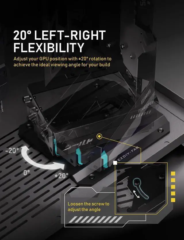 • [ Adjustable 20 Ideal Angle]: Fine-tune your GPU position with 20 left/right rotation to achieve better airflow and a perfectly aligned presentation for your showcase build