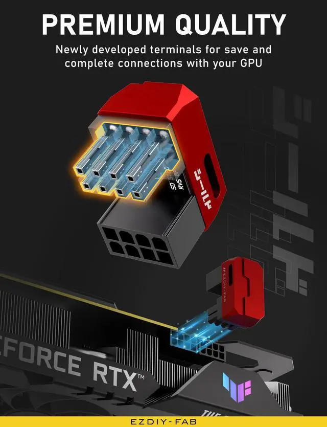 Shield Design- Inspired by the strength of a shield, this design adds a unique visual appeal to your system, enhancing overall aesthetic harmony. ^^ High Compatibility- Available in 90 and 180 angles, as well as STD and RVS orientations, this adapter is compatible with all NVIDIA and AMD GPUs featuring an 8-PIN power connector, and any device with a PCIe 8-PIN power connector. ^^ Aluminum Cooling- The sleek aluminum exterior features integrated thermal venting channels, effectively enhancing heat dissipation and improving system performance ^^ Secure Connections- Equipped with newly developed terminals, these connectors ensure a safe and stable connection even under long-term full-load usage, guaranteeing system reliability and safety.