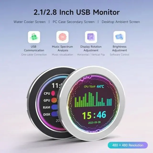 [Real Time Display]Benefit from the high-performance processors, the watercooler screen supports real time display monitoring data, 480x480 Resolution, 2.8inch round monitor with Silver CNC Metal Case.