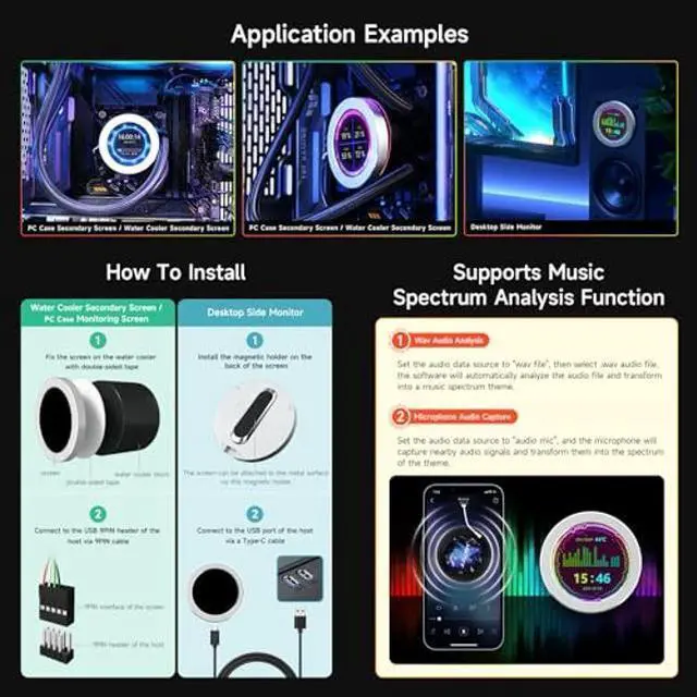 [One-Click Operation]Use with the software we provided, and click 'run' after the screen connecting to the host. Supports automatic startup on boot, one-click to switch themes, brightness adjustment, etc.