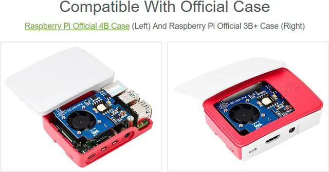 Power Over Ethernet HAT (Type D) for Raspberry Pi 3B+/4B, compatible with the Raspberry Pi 3B+/4B Official Case
