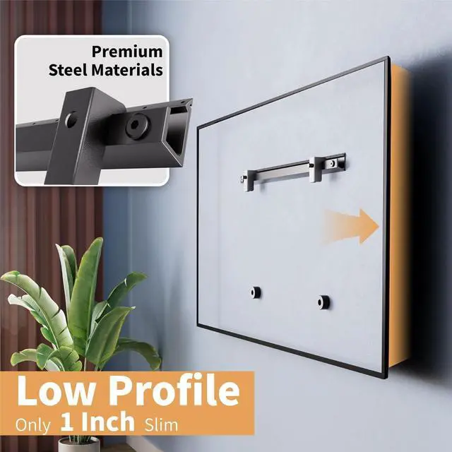 NO-STUD TV WALL MOUNT: Wall studs not required for installation, avoid the hassle of finding studs, AENTGIU studless TV mount accommodates 32 to 75 inch TVs; Can hold up to 100 pounds in dry wall. Low profile--extends only 1.2 inch clearance from the wall for no gap and a clean appearance and can tilt up to +5 degrees