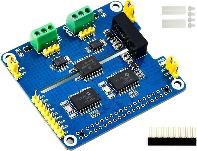 This is a 2-Channel CAN bus expansion HAT designed for Raspberry Pi, supports CAN 2.0, features multi onboard protection circuits, high anti-interference capability, and stable operation. It suits for fields such as automotive devices or industrial automation.