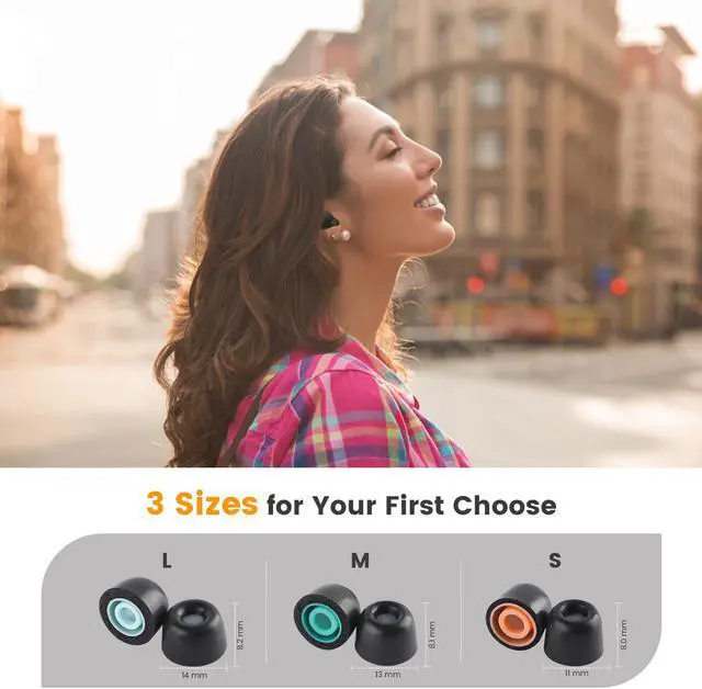 ear tips set: 3 types of eartips, small, medium large, can meet your different needs Earpads are made of memory foam, reusable and durable, breathable, soft to touch and comfortable for your ears.