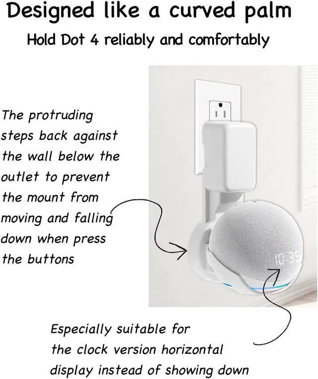 SPEAKER WALL MOUNT: Designed for Dot 4th/5th generation(Device is not included), especially suitable for Echo Dot 4th/5th Gen with clock, it can display the clock horizontally instead of downward. It is not compatible with Ech0 4th Gen which has a bigger size.