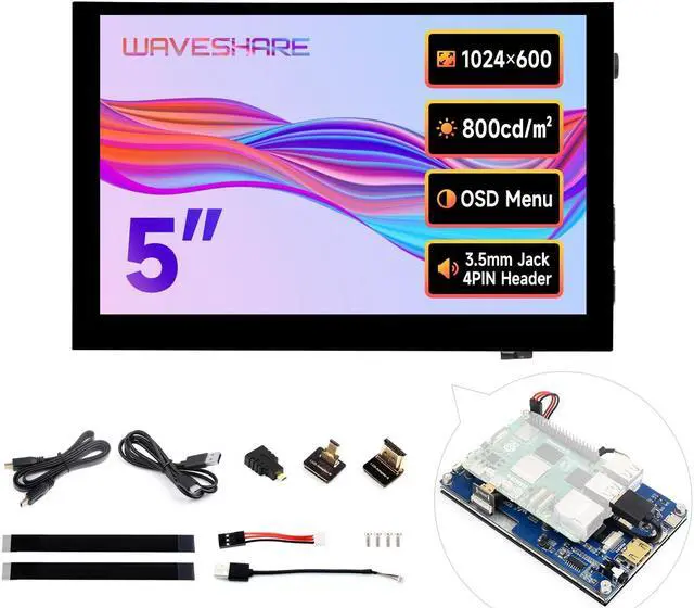 waveshare 5inch High-Brightness Touch Screen, Compatible with Raspberry Pi 5/4B/3B/Zero/Zero W/Zero 2W/Pico/Pico W/Pico WH, Supports Windows 11/10/ 8.1 /8/7 & Jetson Nano, Narrow-Bezel Capacitive Touch