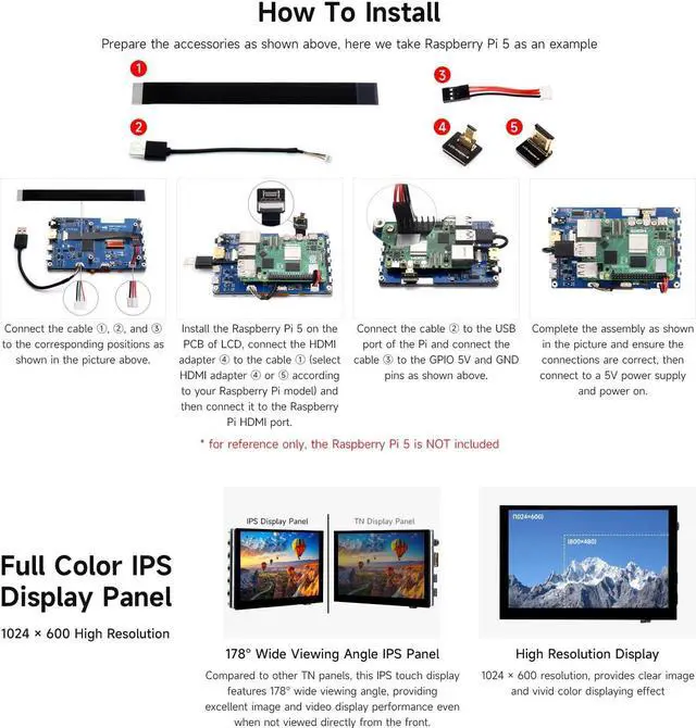 [( Wide Viewing Angle)] Compared to other TN panels, this IPS touch display features 178deg wide viewing angle, providing excellent image and video display performance even when not viewed directly from the front.