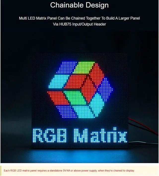 multi LED matrix panel can be chained together to build a larger panel via HUB75 input/output header