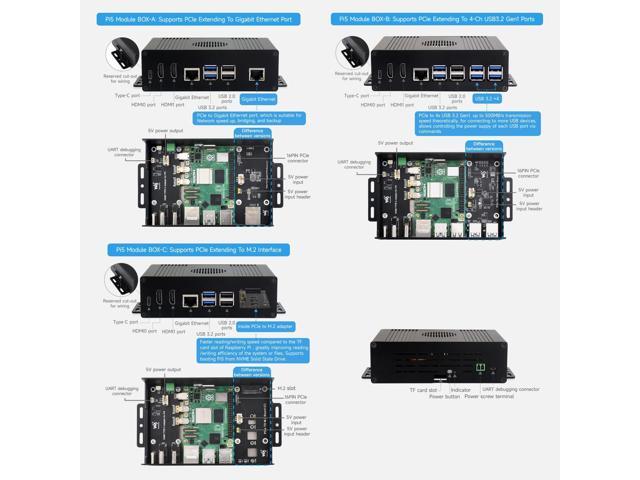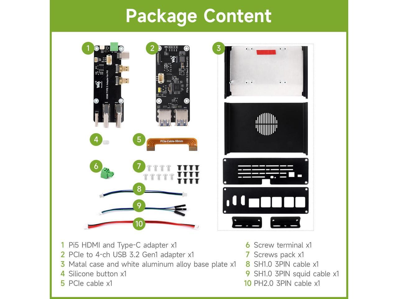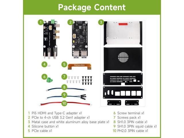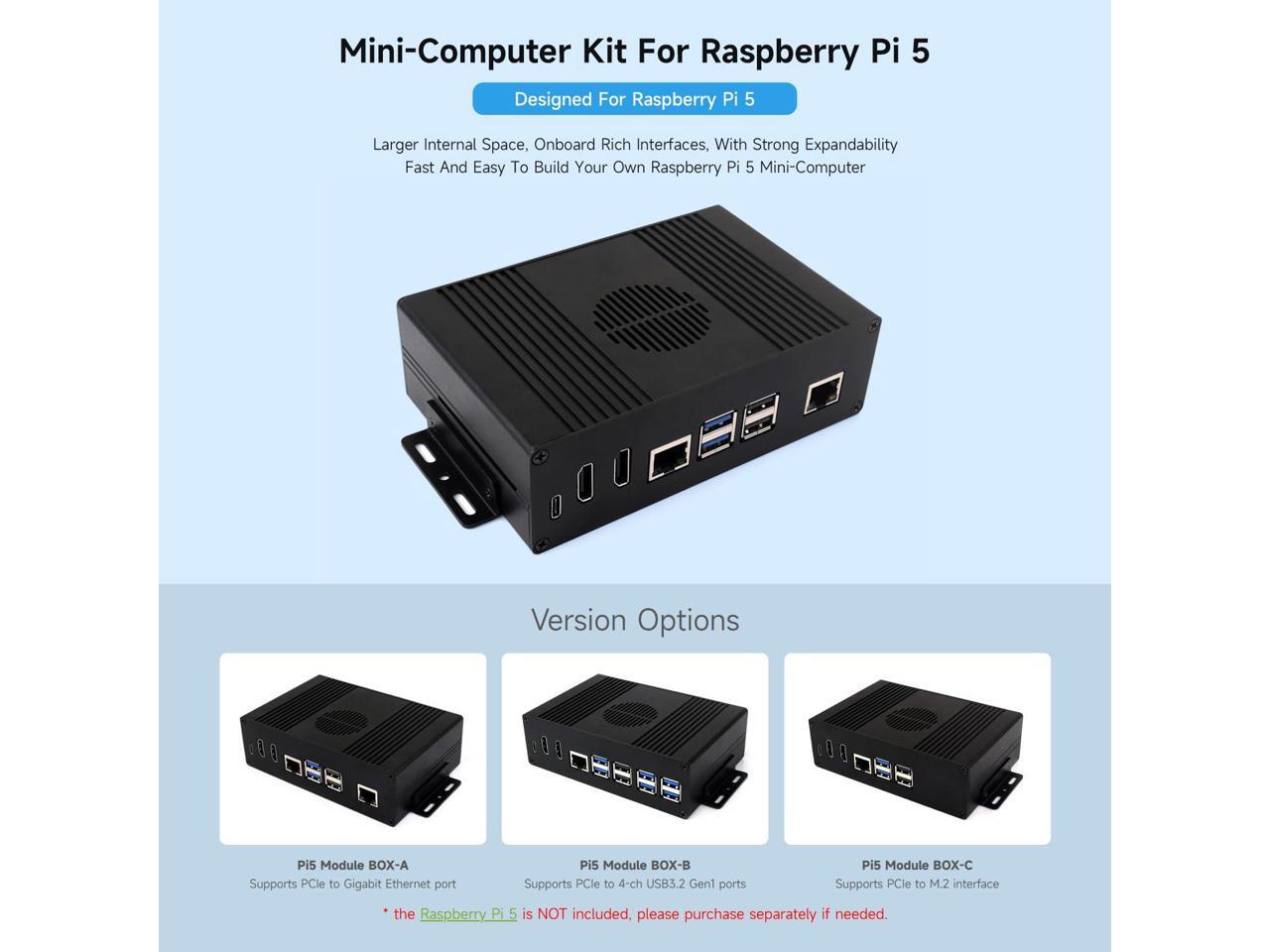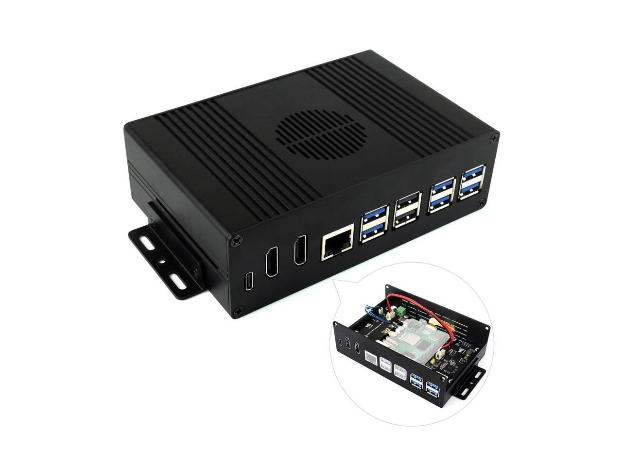Waveshare Multi-Functional All-in-One Mini-Computer Kit, Compatible with Raspberry Pi 5, Aluminum Alloy Case, Comes with PCIe to 4-ch USB 3.2 Gen1 Adapter