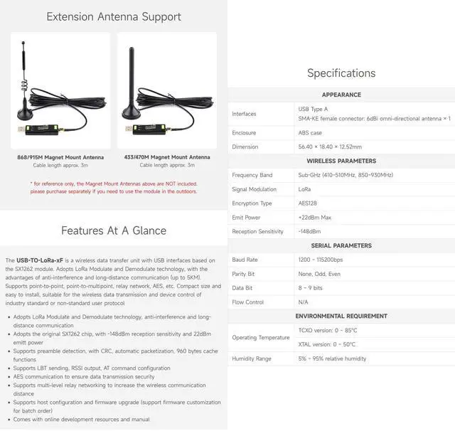 This is 2 PCS Version. USB-TO-LoRa-xF uses TCXO crystal oscillator and is recommended to be use in 0~85 temperature.