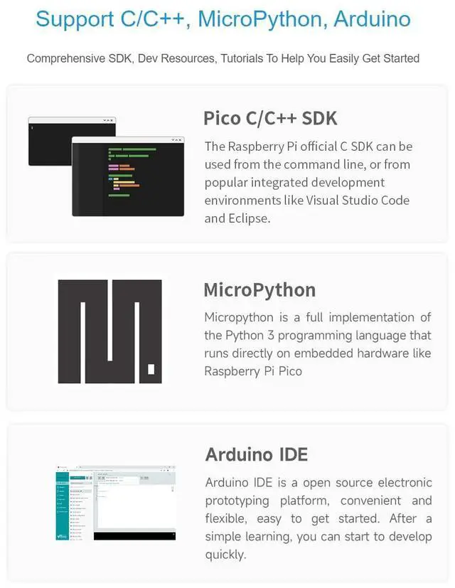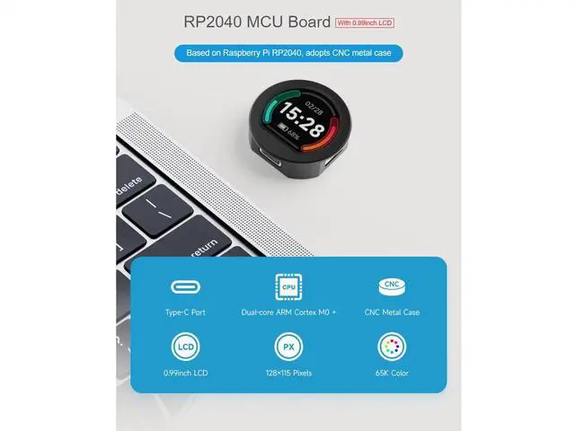 Key features include: RP2040 microcontroller chip designed by Raspberry Pi in the United Kingdom Dual-core Arm Cortex M0+ processor, flexible clock running up to 133 MHz 264KB of SRAM, and 2MB of on-board Flash memory Type-C connector, keeps it up to date, easier to use Onboard 0.99 inch 128x115 pixels 65K colorful IPS LCD display (with flat bottom) for clear color pictures 4 x GPIO pins are adapted through SH 1.0 6PIN connector Adopts CNC metal case with Acrylic dull-polish bottom plate USB 1.1 with device and host support Low-power sleep and dormant modes Drag-and-drop programming using mass storage over USB 2 x I2C, 4 x 12-bit ADC Accurate clock and timer on-chip Temperature sensor Accelerated floating-point libraries on-chip 8 x Programmable I/O (PIO) state machines for custom peripheral support LCD Parameters Controller---GC9107 Communication Interface---SPI Display Panel---IPS Resolution---128 (H) RGB x 115 (V) Display Dimensions---Ph33mm Pixel Size--- 0.19 (H) x 0.19 (V) mm
