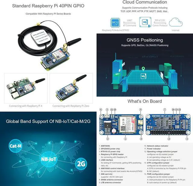 Waveshare SIM7000G NB-IoT/Cat-M/Edge/GPRS HAT, Compatible with Raspberry Pi 5/4B/3B/Zero/Zero W/Zero 2W/Pico/Pico W/Pico WH, GNSS Positioning, Global Band Support